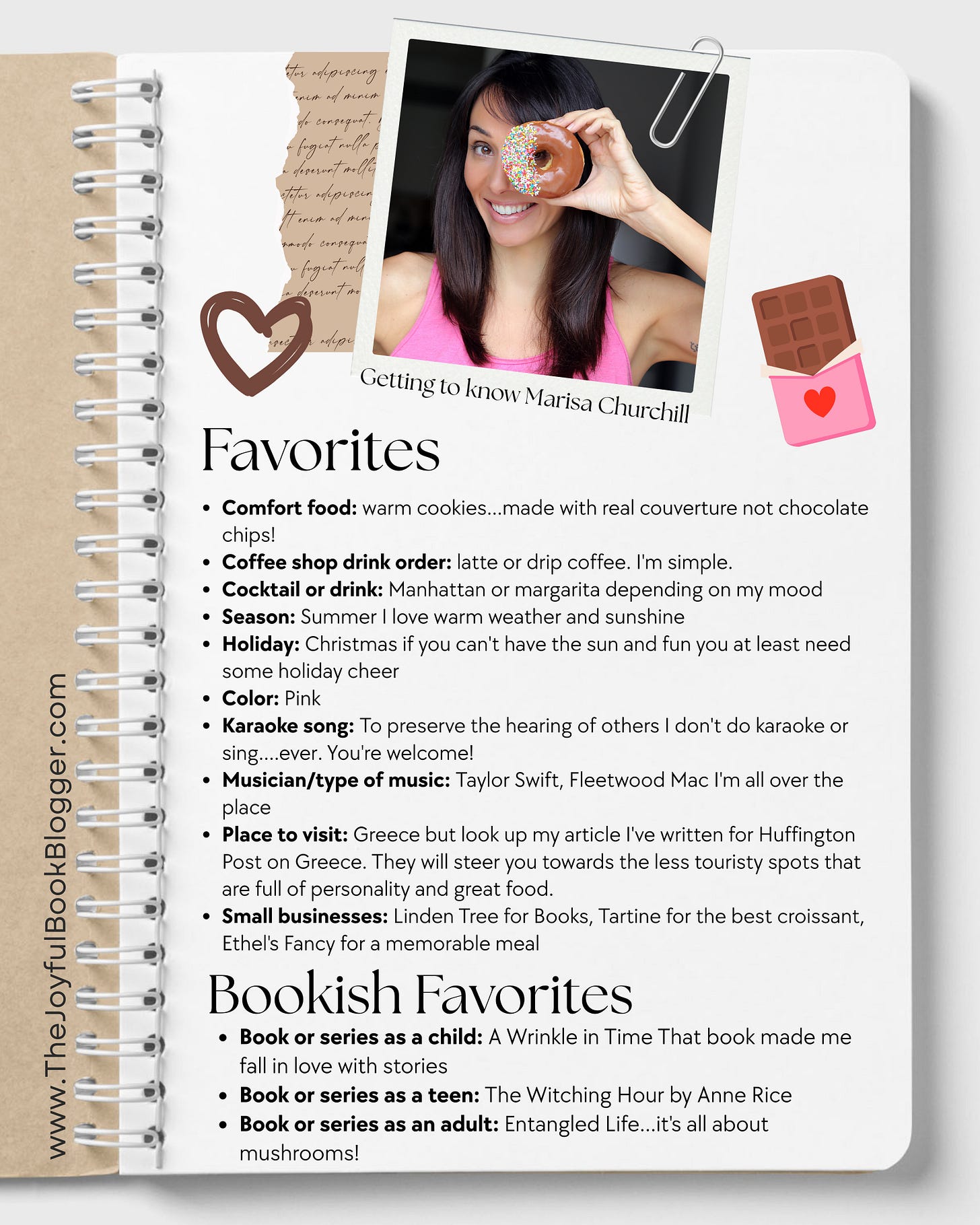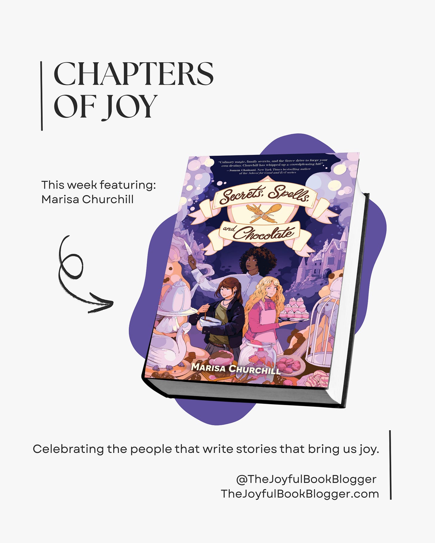 Hi Marisa, thanks so much for joining us here on Chapters of Joy. I‘m looking forward to your new book Secrets, Spells, and Chocolate and I’m thrilled to have you here!
