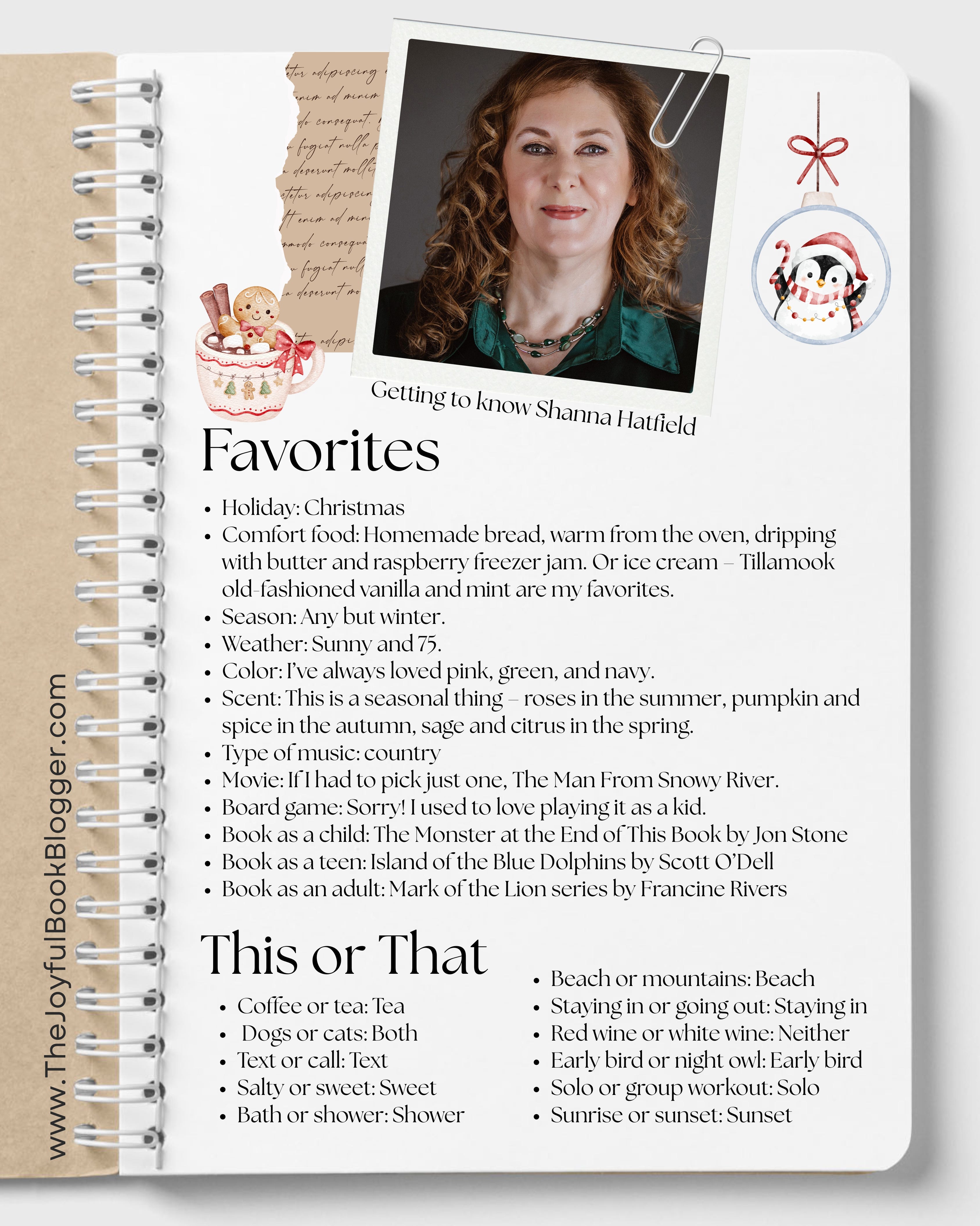 USA Today Bestselling Author Shanna Hatfield creates character-driven romances with realistic heroes and heroines. Her contemporary fiction has been called “laugh-out-loud funny, and a little heart-pumping sexy without being explicit in any way” and her historical westerns have been described as “reminiscent of the era captured by Bonanaza and The Virginian.”