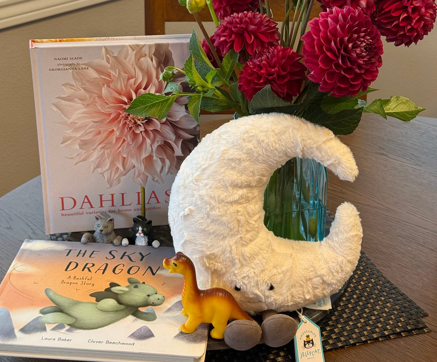 One of the highlights of this past week was visiting the local Dahlia farm. We got to view the most beautiful flowers, snacked on some apple cider donuts, and bought a few bunches of dahlias to enjoy at home. I also got to browse the gift shop (yay for having a well-behaved kiddo that day!) and bought a few goodies there too.